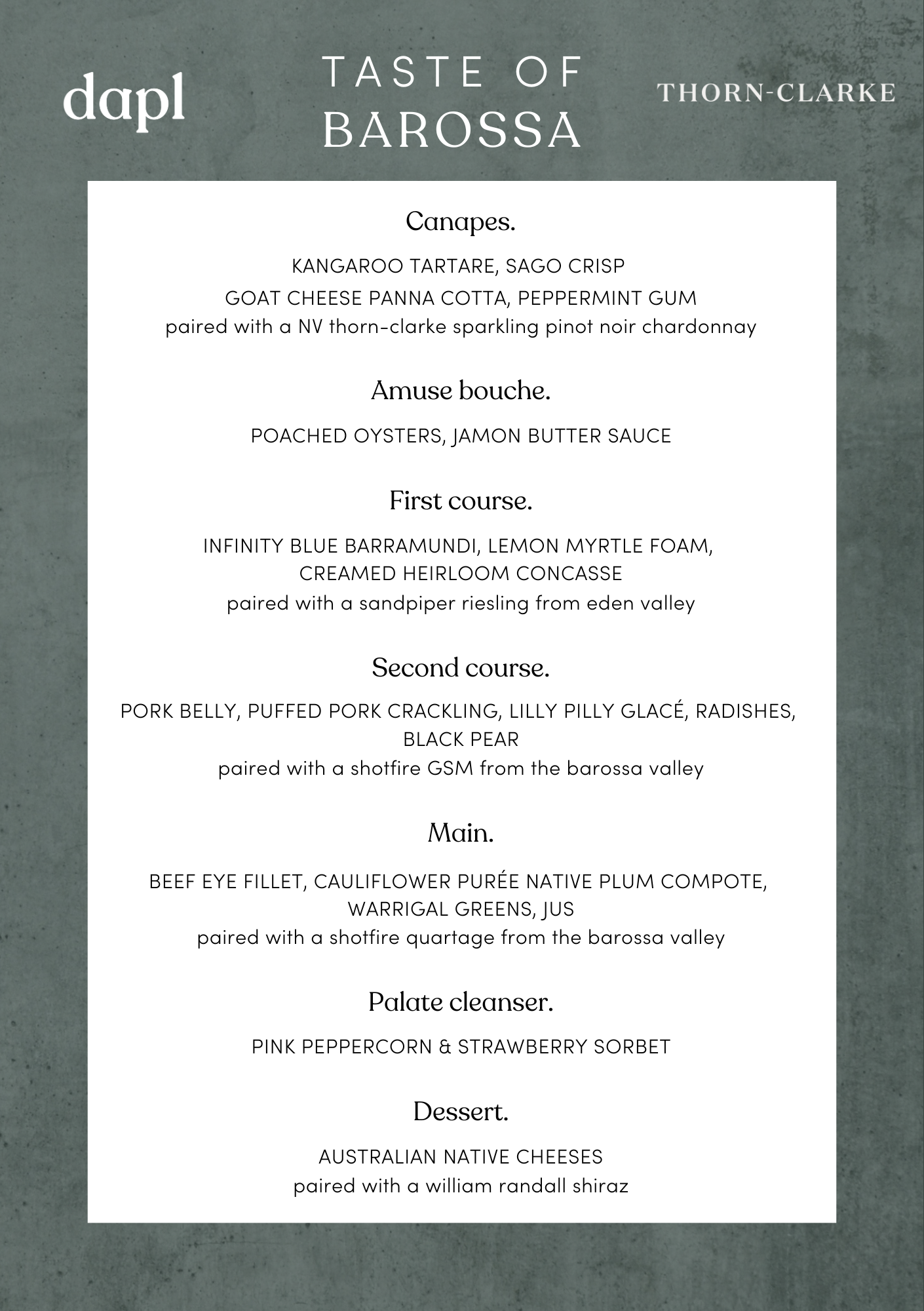Experience the spoils of the Barossa Valley right here at Amora Brisbane with our Taste of Barossa at dapl